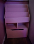 Het is een mooie boekenkast! precies zoals op de foto. (kleur komt anders over omdat de foto gemaakt is tijdens dat de regenboog lamp aan stond)
