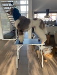 Staat stevig. Trimlus hoog genoeg voor een grote hond. Twijfel wel over 1 maat groter.