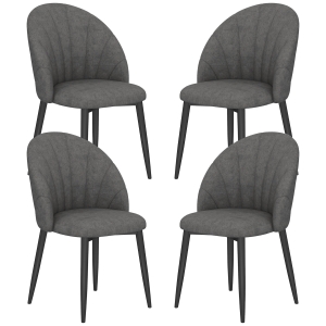 HOMCOM 4-delige Set Eetkamerstoelen, Keukenstoelen in Fluweeloptiek, Stalen Poten, armloos, Grijs