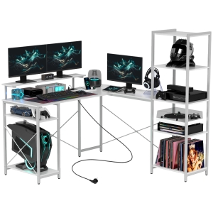 HOMCOM Computertafel L-vormig hoekbureau MDF naturel / zwart hoekbureau
