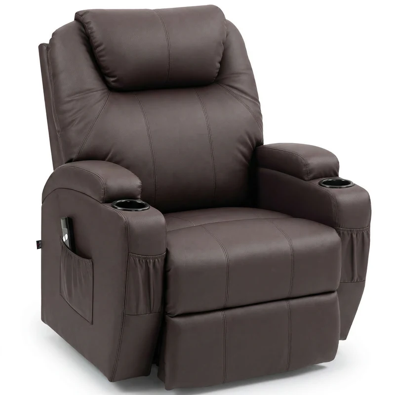 HOMCOM Opsta Stoel comfortabel met afstandsbediening en bekervouders voor Huisgebruik, Koffiebruin