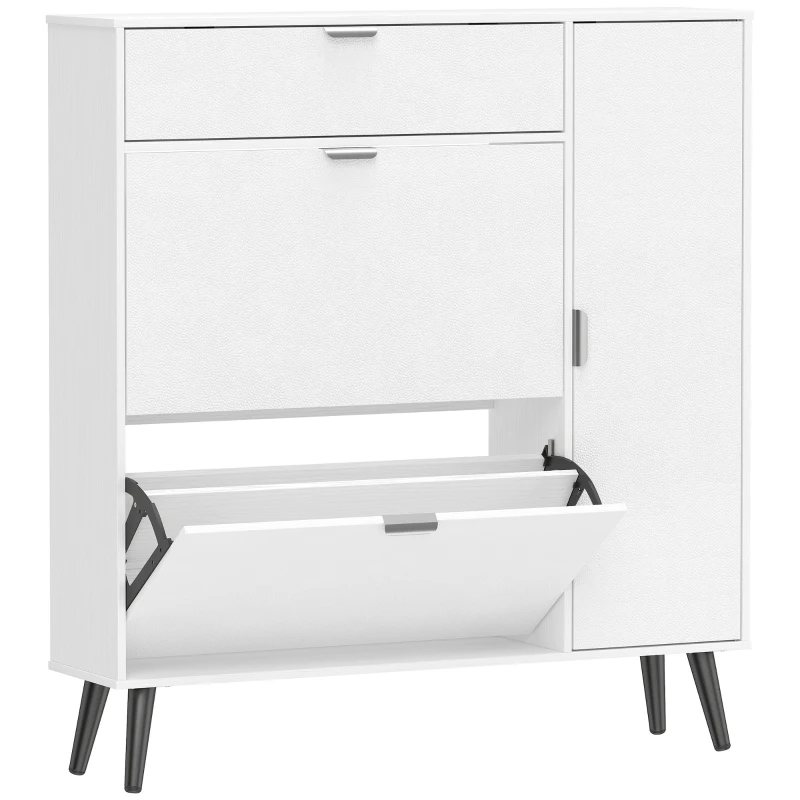 HOMCOM Smalle schoenenkast met 2 klepvakken, schoenenkast met lychee-lederen deuren en verstelbare planken, wit