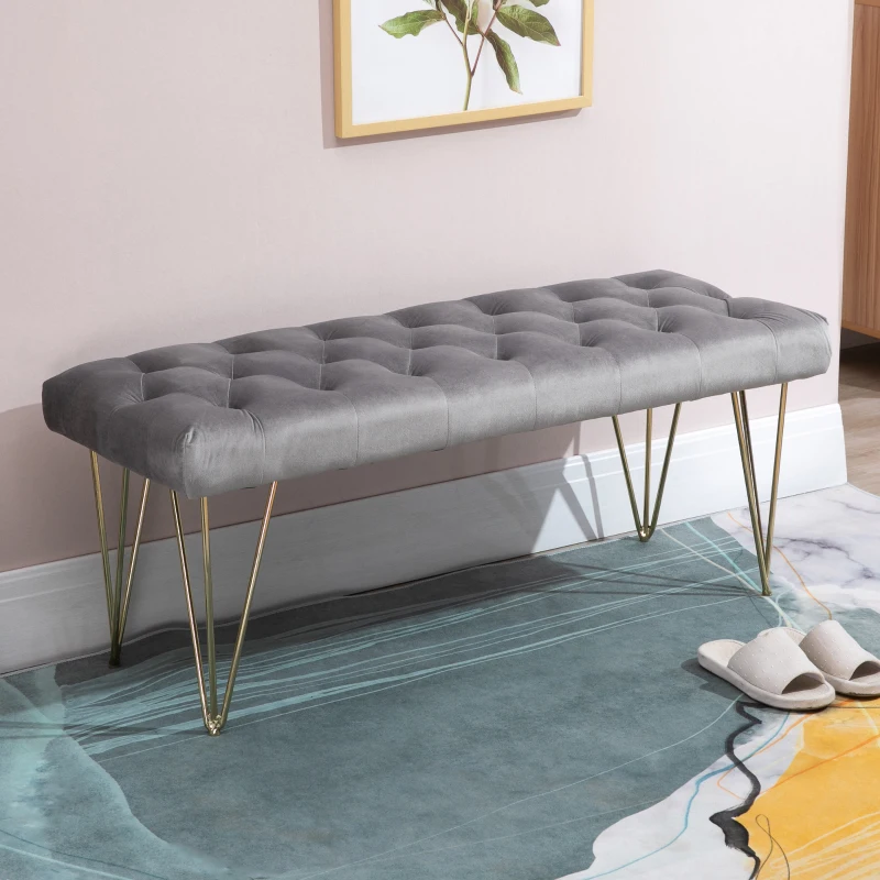 HOMCOM Zitbank schoenenbank kist entree gestoffeerde bank fluweel metaal grijs