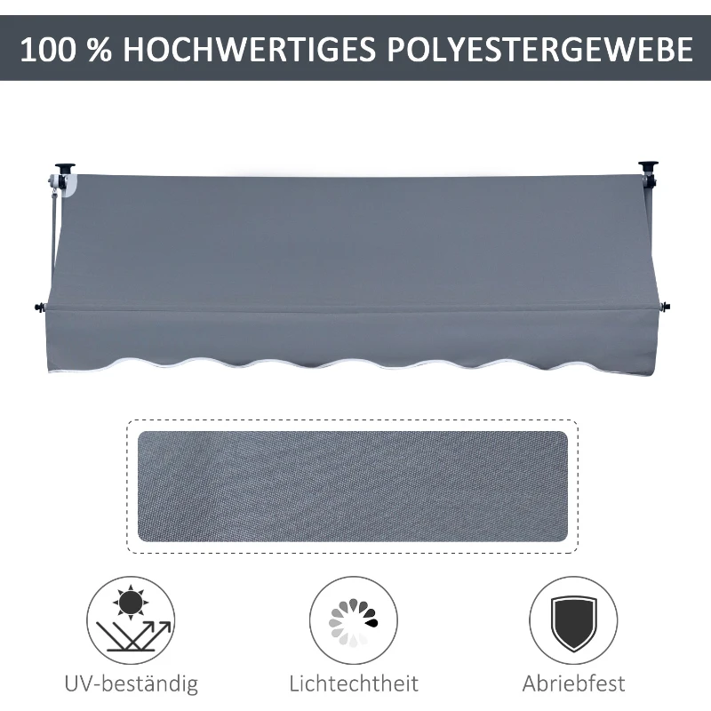 Luifel knikarm klem luifel zonwering handslinger balkon aluminium 3 x 1,2 m grijs