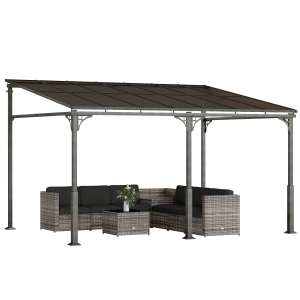 Outsunny Terrasoverkapping ca. 3 x 4,3m vrijstaande terrasoverkapping met hellend polycarbonaat-dak voor wandmontage Donkergrijs