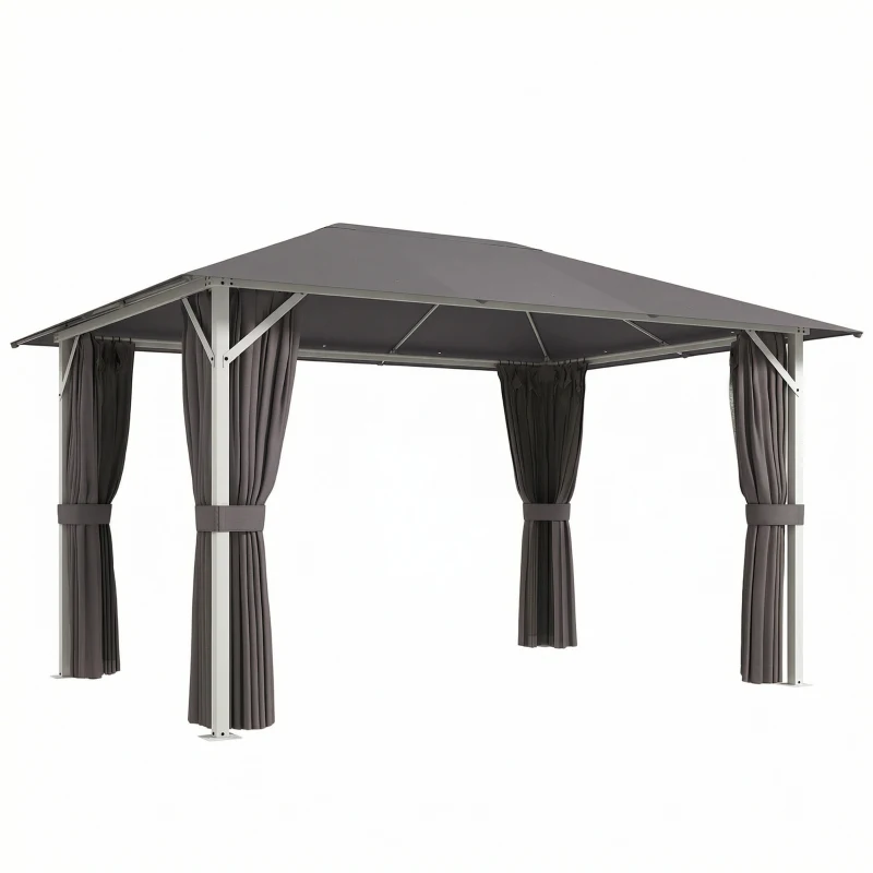 Outsunny Tuinpaviljoen ca. 4x3m waterafstotend stabiel winterbestendig met muskietennet, 4 zijwanden, ventilatie en afvoergaten
