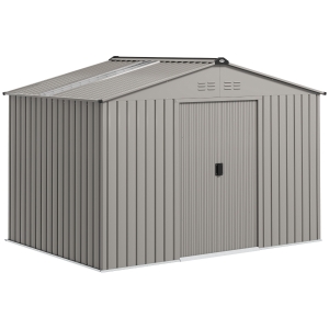 Outsunny Tuinschuur, Kunststof Tuinhuis met Vloer, Venster, Vergrendelbare Deuren, voor Tuin, 131B x 186D x 198H cm, Grijs