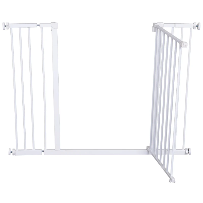 PawHut deurbeveiligingspoort, traphekje, hondenhek, barricade, hondenbarricade, klembevestiging, metaal, wit, 72-107 x 76 cm