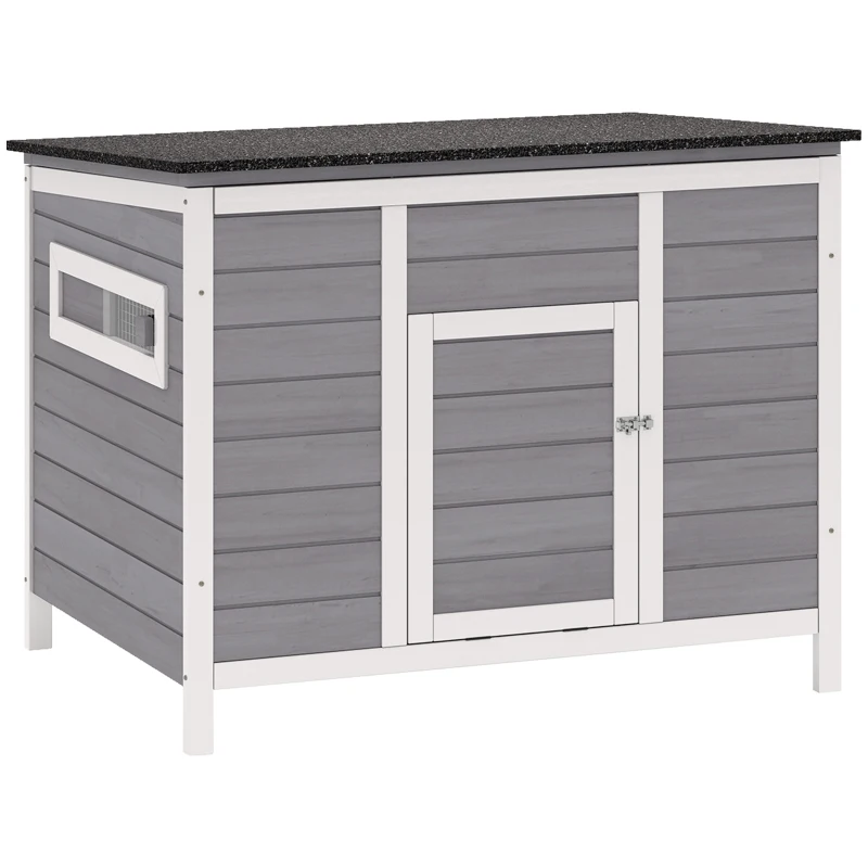 PawHut Eendenhok waterbestendig eendenhuis van hout met uitneembare bodem schuifvenster opklapbaar asfaltdak 93x70x72cm Grijs