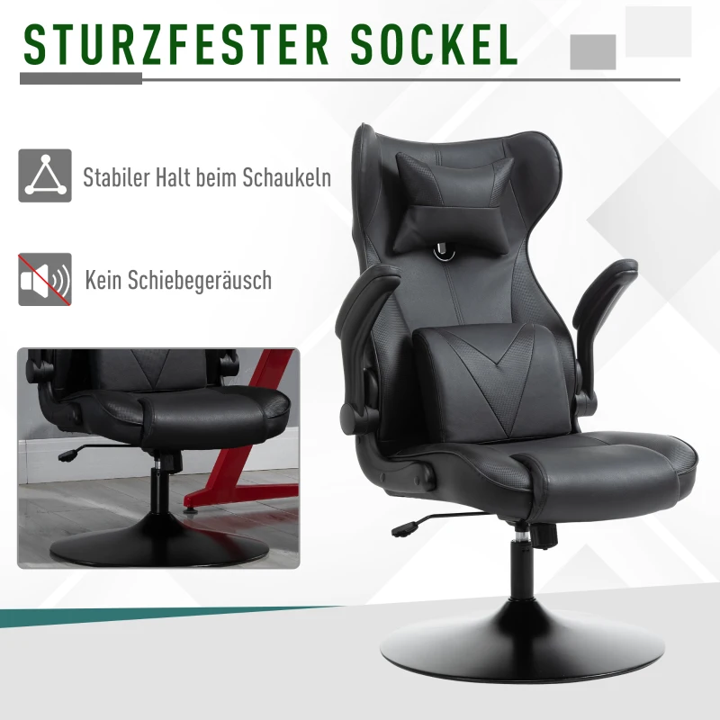 Vinsetto gamestoel ergonomische computerstoel bureaustoel bureaustoel met schommelfunctie en lendenkussen bureaustoel in hoogte verstelbaar, gepolsterde metalen zitting, zwart 67x75x112 cm
